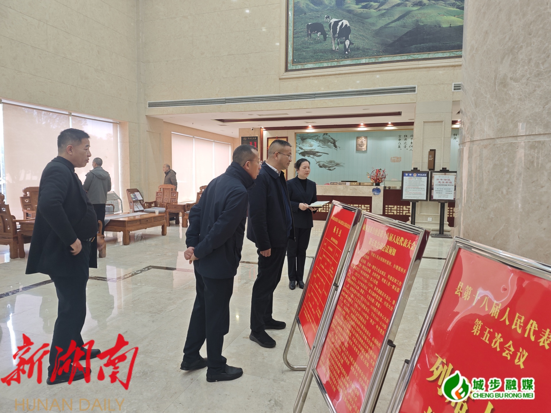 新城步客户端2月26日讯 (记者 毛学军 见习记者 杨芊芊)2月26日,县人大常委会党组书记、主任李宪带队检查县第十八届人民代表大会第五次会议筹备工作情况。县人大常委会党组副书记、副主任提名人选杨辉刚,副主任周小毛、漆小玲、唐炎,县人大会议筹备工作组相关负责人一同参加检查。