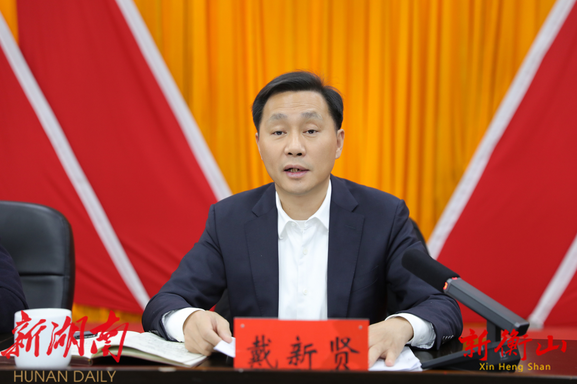 新衡山客户端2月27日讯(记者:胡程远 周彭斌)2月27日,全县优化营商环境、项目建设暨企业服务年行动部署大会召开。衡阳市政协副主席、衡山县委书记戴新贤出席会议并讲话,强调要以“开局即决战”的姿态,全力打好项目建设、企业帮扶、优化营商环境主动仗,为实现“十五五”良好开局奠定坚实基础。县委副书记、代县长陈瑞来全面讲评2025年度全县优化营商环境、项目建设及企业联手帮扶工作,并就2026年度上述三项重点任务的推进落实作部署报告。县委副书记、政法委书记谢斌主持会议并通报2025年度全县重点项目建设情况。县人大常委会主任旷志军,县政协主席唐年初出席。