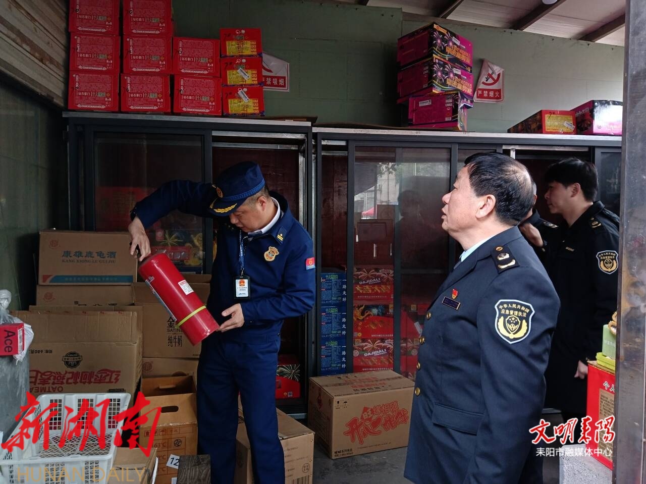 耒阳融媒2月25日讯(记者 刘喜) 2月24日,耒阳市消防救援局联合应急管理局开展烟花爆竹销售场所消防安全专项检查,全力保障辖区消防安全和群众生命财产安全。