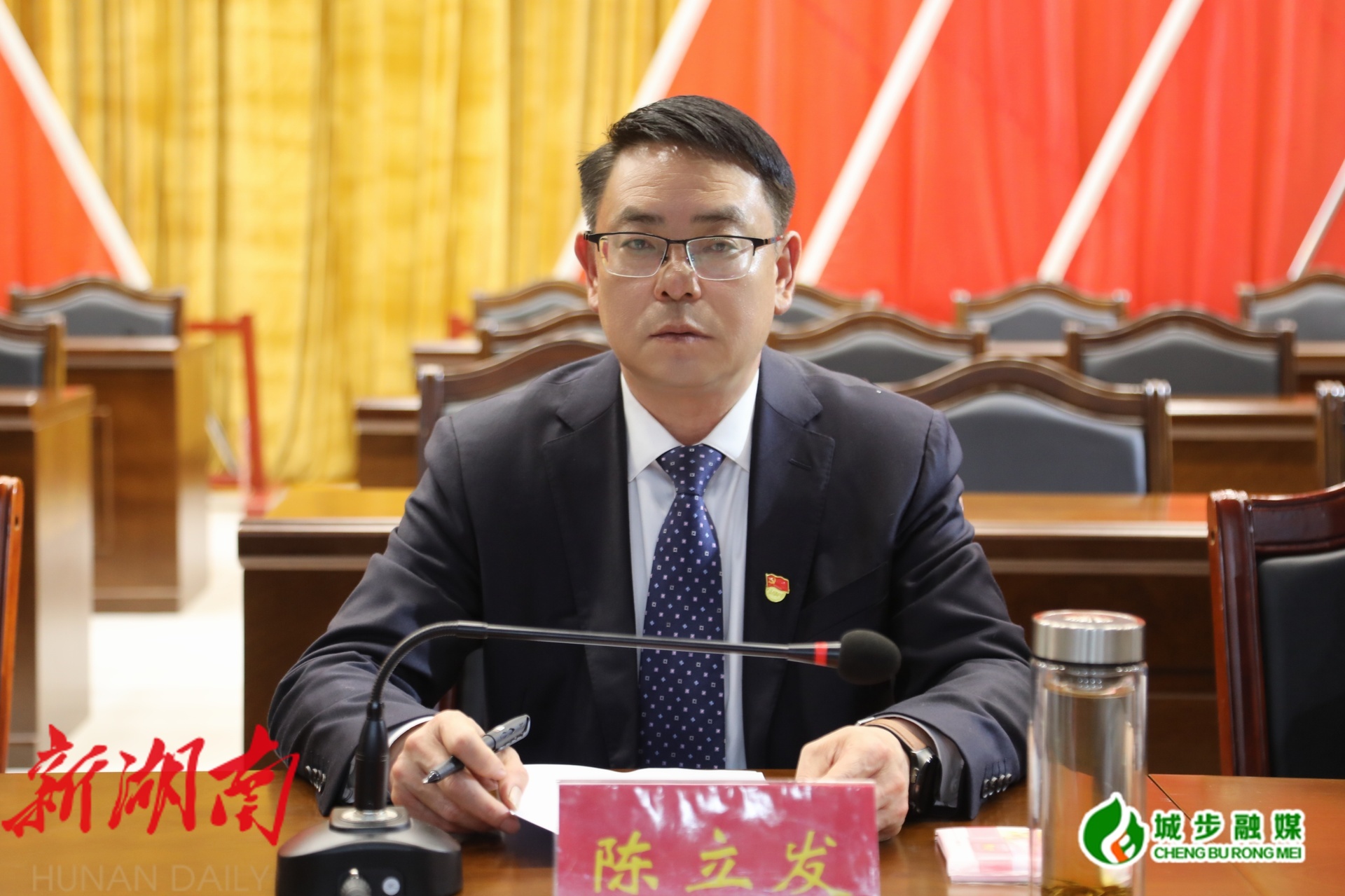 图为县委副书记、县委统战部部长陈立发主持会议