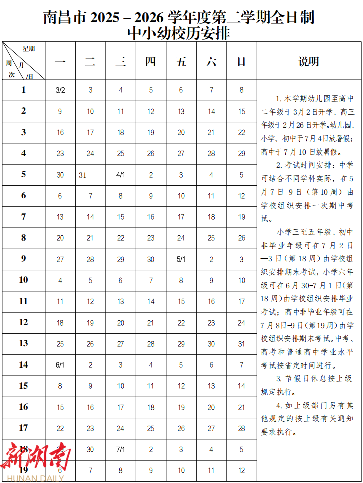 江西全省高三年级统一于2月26日开学,幼儿园、小学、初中及高一、高二年级统一于3月2日正式上课。春季学期总时长19周,减去假期和周末后,实际教学天数同样低于90天。