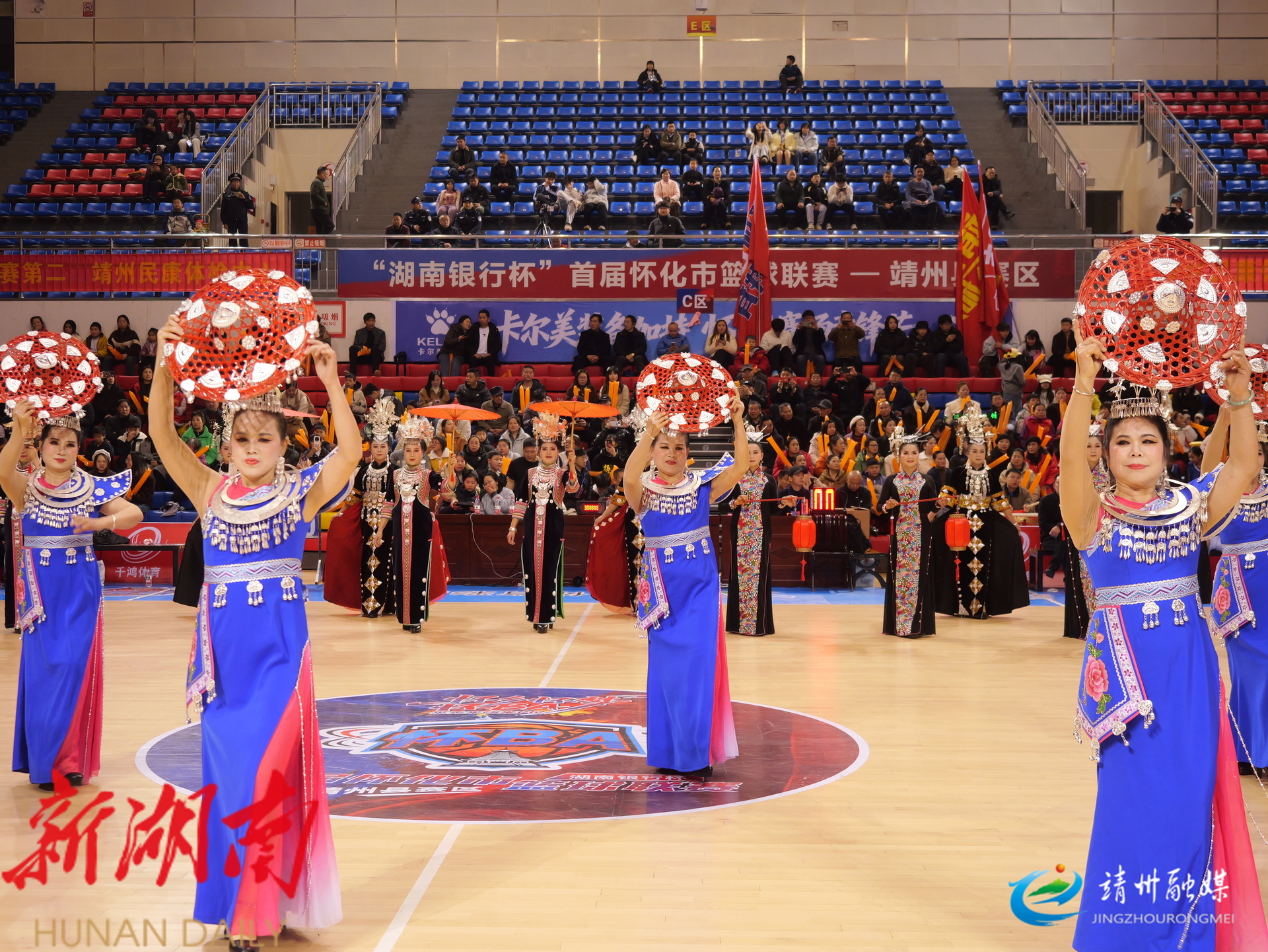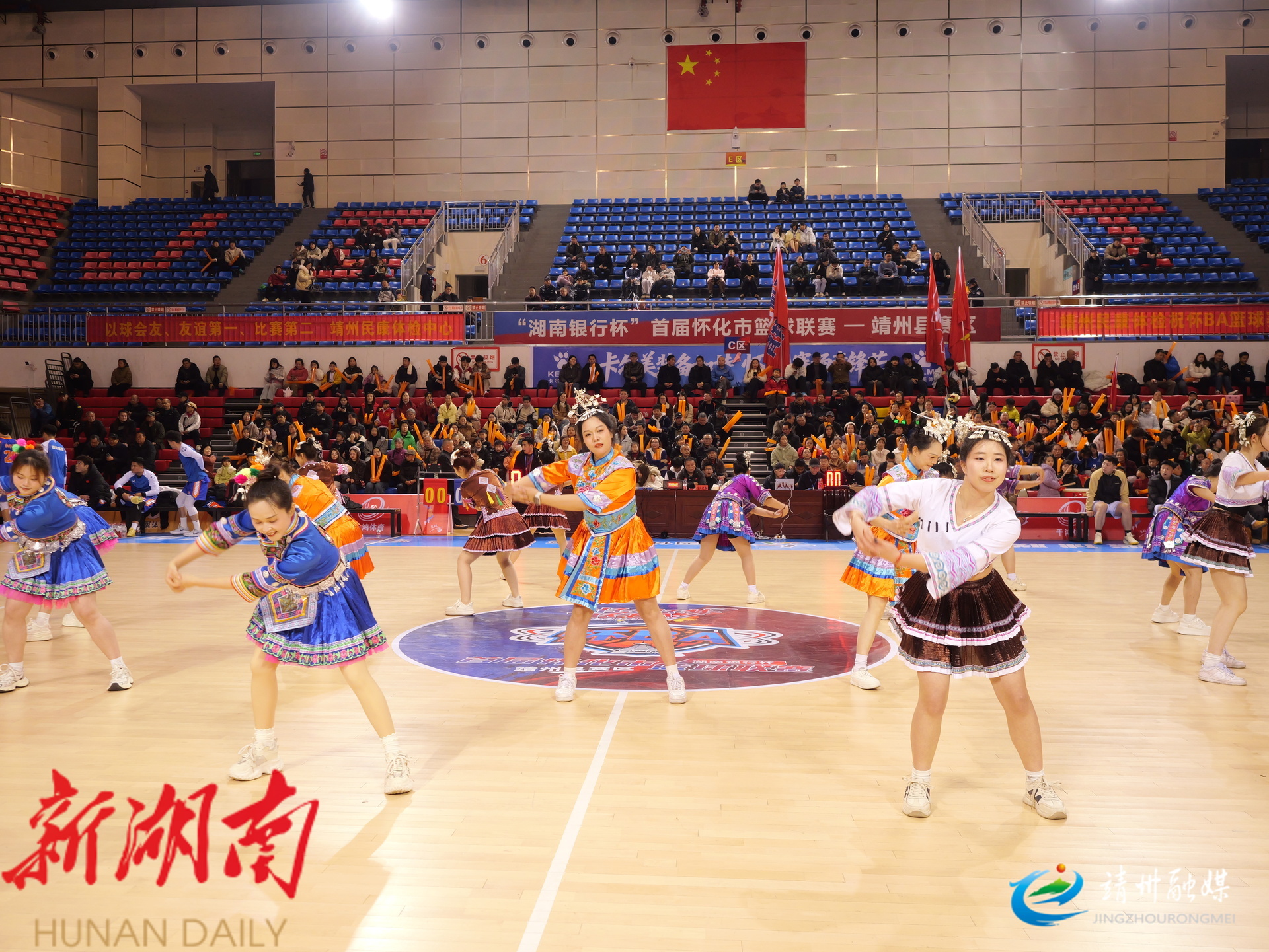 赛前,靖州体育馆内人声鼎沸、氛围热烈,极具苗侗民族特色的舞蹈表演轮番登场,灵动舞姿与浓郁民族风情相融,为赛事预热造势。