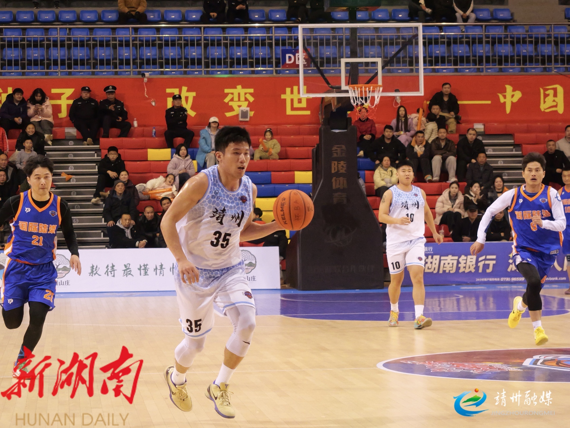 比赛开局,双方迅速进入状态,攻防转换节奏紧凑,比分交替上升、悬念十足。靖州队沉着应战,防守端密不透风,多次成功拦截对手进攻;进攻端敢打敢拼,队员传切配合流畅,精彩抢断与突破上篮接连上演。怀化国际陆港经开区队不甘示弱,持续发起反击紧咬比分,赛事对抗十分激烈。末节决战,靖州队愈战愈勇,牢牢守住主场优势并逐步拉开分差,将胜利保持至终场。
