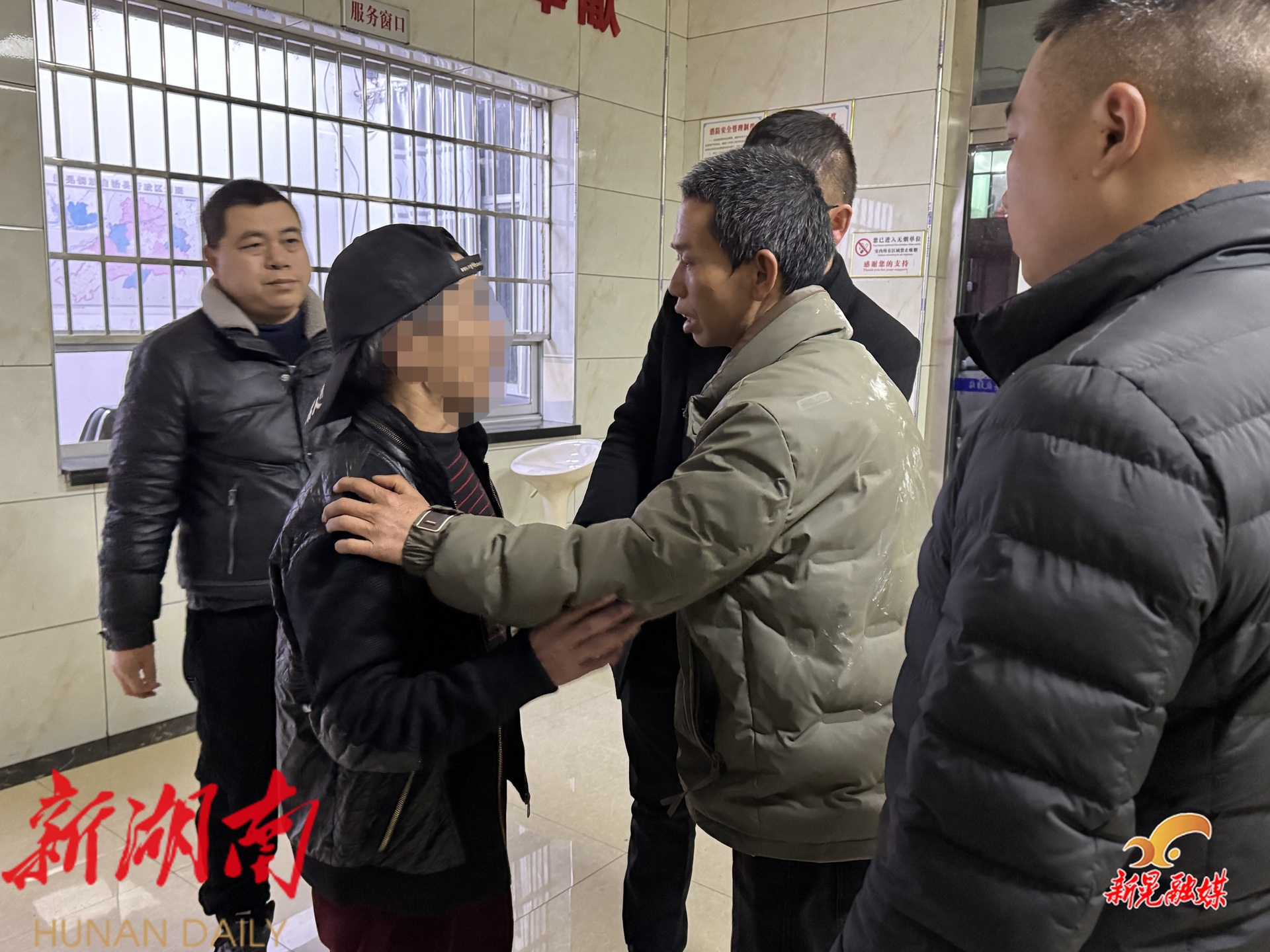 2月28日晚,接到通知的杨某携家人驱车连夜抵达新晃。在县救助管理站认亲现场,白发苍苍的杨某某颤巍巍伸出手,抚摸儿子脸颊;杨某望着二十二年未见的父亲现场无言,对父亲缺席自己人生的怨恨烟消云散,唯有泪水浸透衣襟。