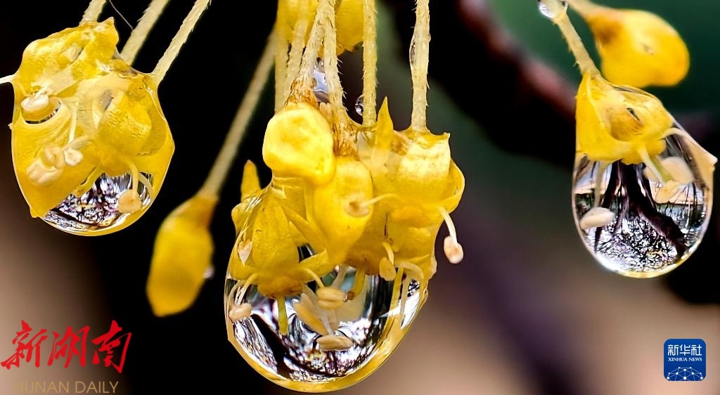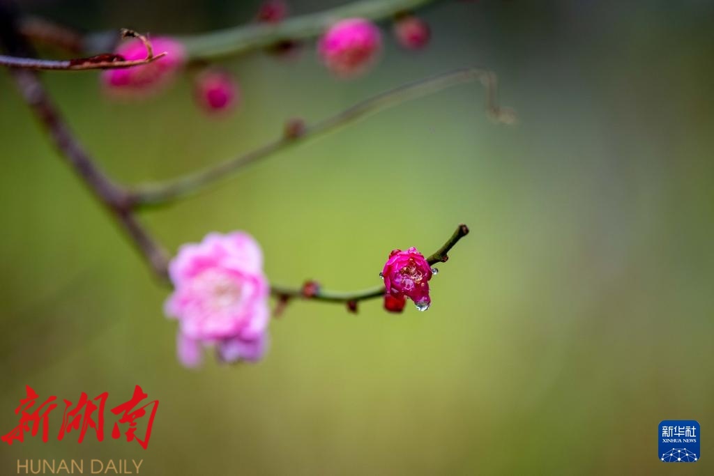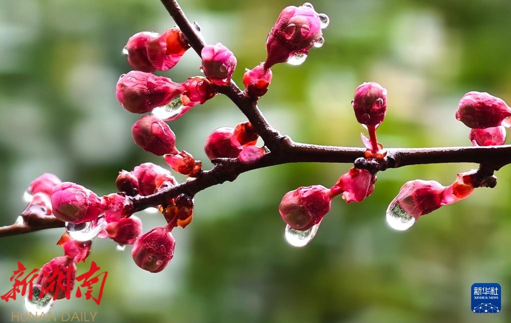 一场春雨过后,晶莹剔透的雨珠缀满枝头,勾勒出别样春日景致。