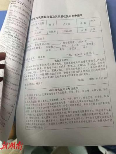 然而,一个难题横亘在医护团队面前:当地血站用血全面告急,按规定,在血源紧张的情况下,患者需家属先行献血方可优先用血。而严爷爷是五保户,举目无亲,找不到任何亲属可以为他献血。