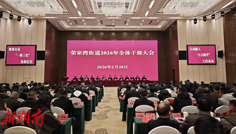 湖南日报·新湖南客户端3月2日讯(通讯员 关源涛 付意愿) 蓝图绘锦绣,策马踏征程。为复盘过去一年工作成效,锚定新一年发展目标,2月28日,荣家湾街道召开2026年全体干部大会。荣家湾街道全体党政负责干部、驻村第一书记、全体机关事业站所干部、各村(场)社区“两委”成员、外设部门站所负责人等参加会议。