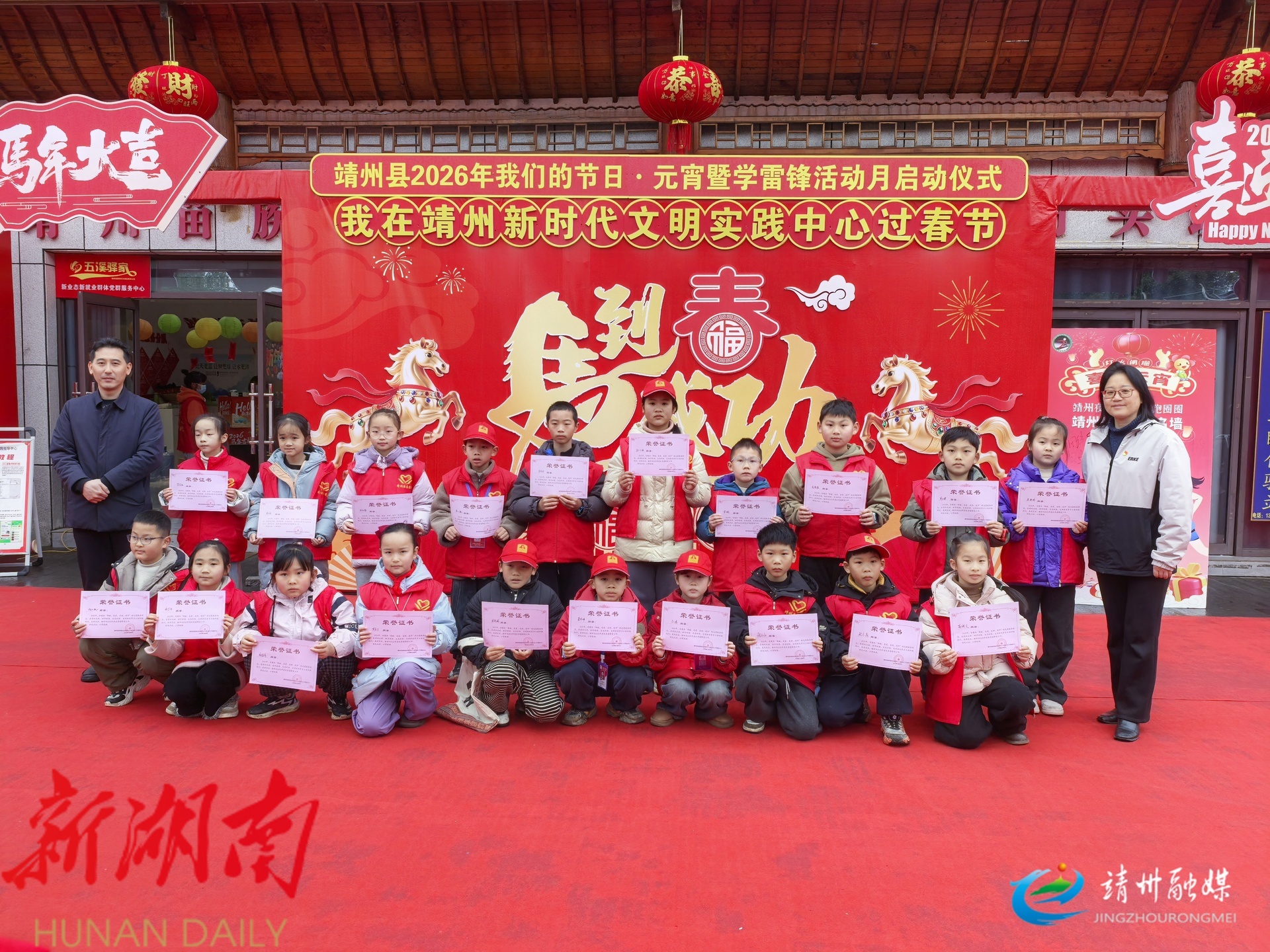 靖州融媒3月2日讯 (记者 钦苏芬 胡耀文 通讯员 秦明)3月2日,靖州苗族侗族自治县2026年“我们的节日·元宵”暨学雷锋活动月在县新时代文明实践中心启动,通过表彰先进、爱心关怀、民俗体验、志愿服务等形式,让元宵佳节更有温度,让雷锋精神深入人心。