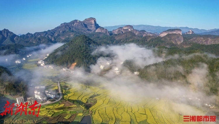 新宁崀山旅游区油菜花海全景。景区供图