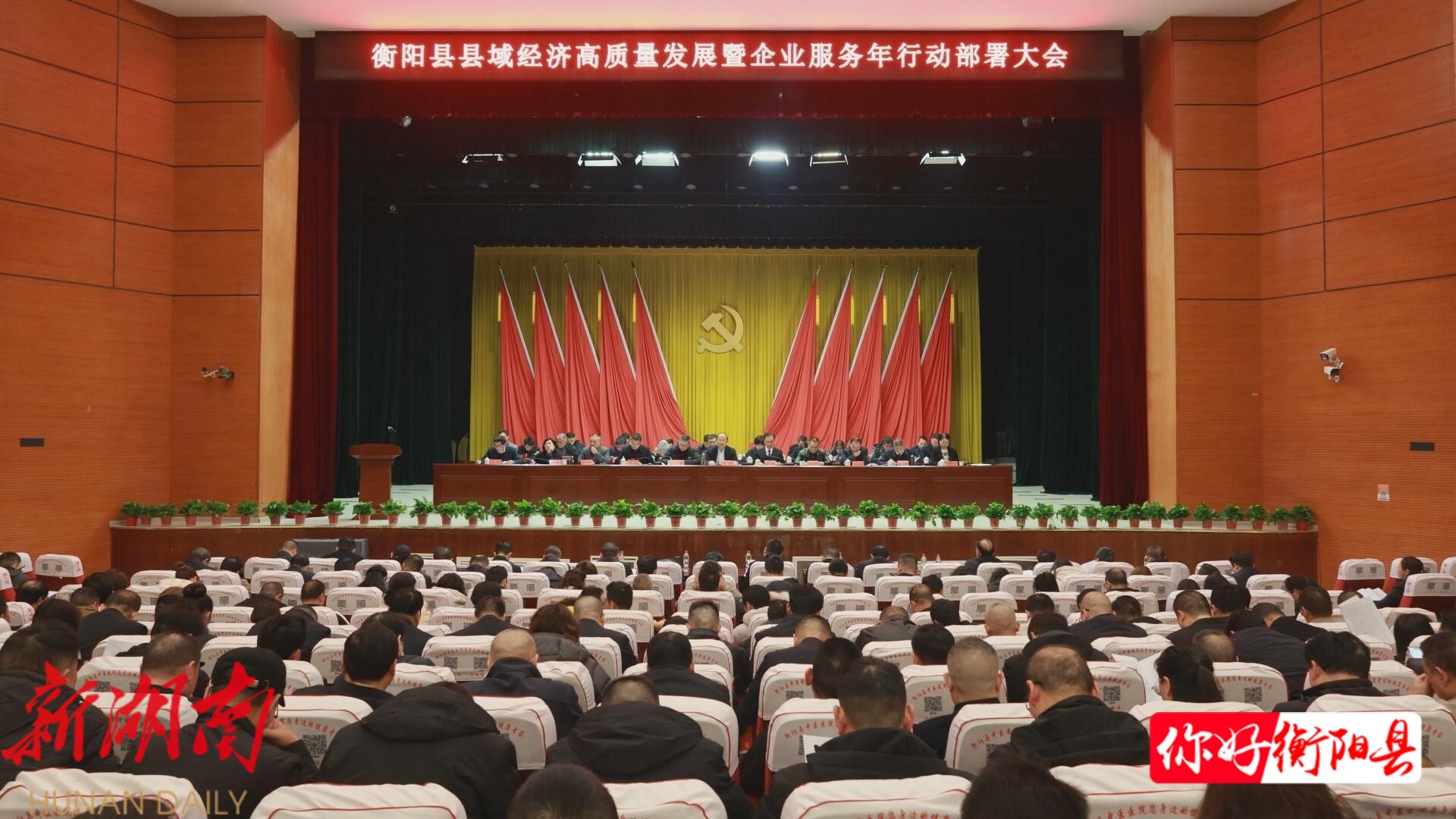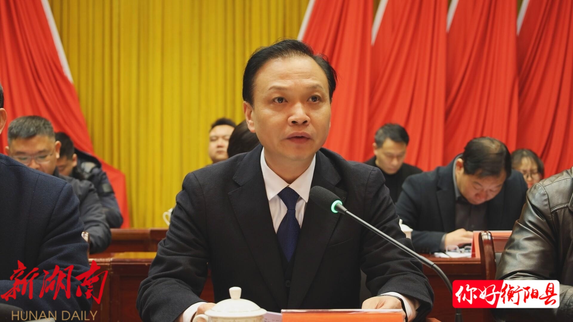 衡阳县融媒3月3日讯(记者:曾立林 吴展名 张兴宇 廖辉煌) 3月3日,衡阳县召开县域经济高质量发展暨企业服务年行动部署大会,以“新春第一会”的奋进姿态,吹响实干争先的冲锋号、打响拼搏奋进的发令枪。县委书记孙浩出席并强调,要深入贯彻中央和省委、市委、县委经济工作会议精神,全面落实省市相关部署要求,动员全县上下统一思想、铆足干劲,以时不我待、策马扬鞭的闯劲,踔厉奋发、万马奔腾的拼劲,重任在肩、一马当先的干劲,奋力建设县域经济强县,确保“十五五”开好局、起好步。县委副书记、县长杨峰主持会议,县人大常委会主任叶强,县政协主席方云耕出席。
