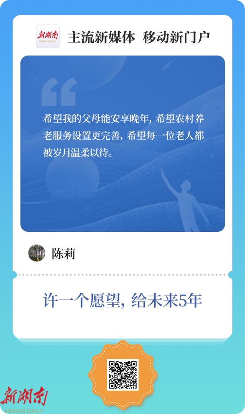 “高维”:我希望未来五年,自己能攒够底气去看遍湖湘山水,也能陪着家乡一起变得更好。湖南的乡村产业越来越旺,乡亲们的日子越过越甜,家门口就能享受到更好的医疗和教育。