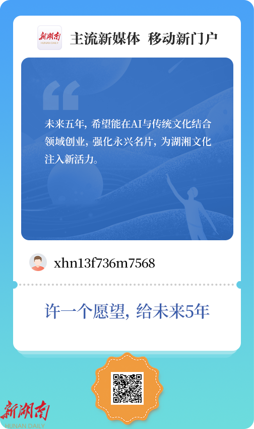 “ xhn13f736m7568 ”: 未来五年,希望能在 AI与传统文化结合领域创业,强化永兴名片,为湖湘文化注入新活力。
