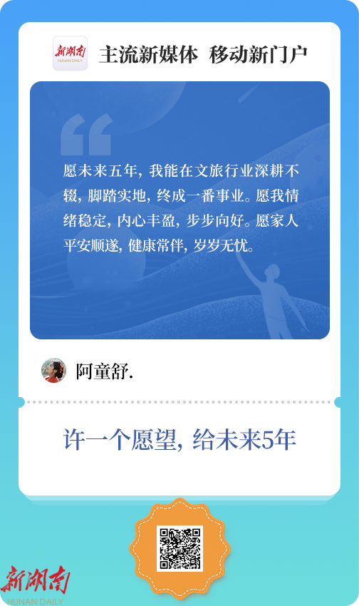 “阿童舒.”:愿未来五年,我能在文旅行业深耕不辍,脚踏实地,终成一番事业。愿我情绪稳定,内心丰盈,步步向好。愿家人平安顺遂,健康常伴,岁岁无忧。