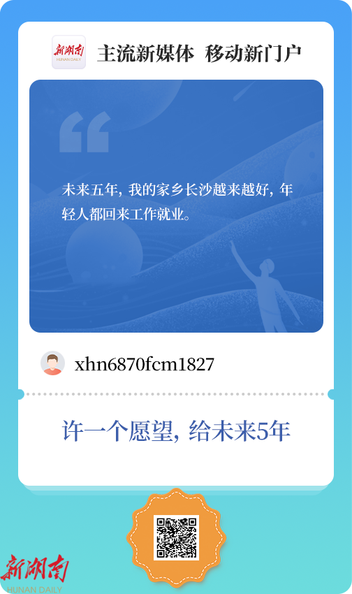 “ xhn6870fcm1827 ” : 未来五年,我的家乡长沙越来越好,年轻人都回来工作就业。