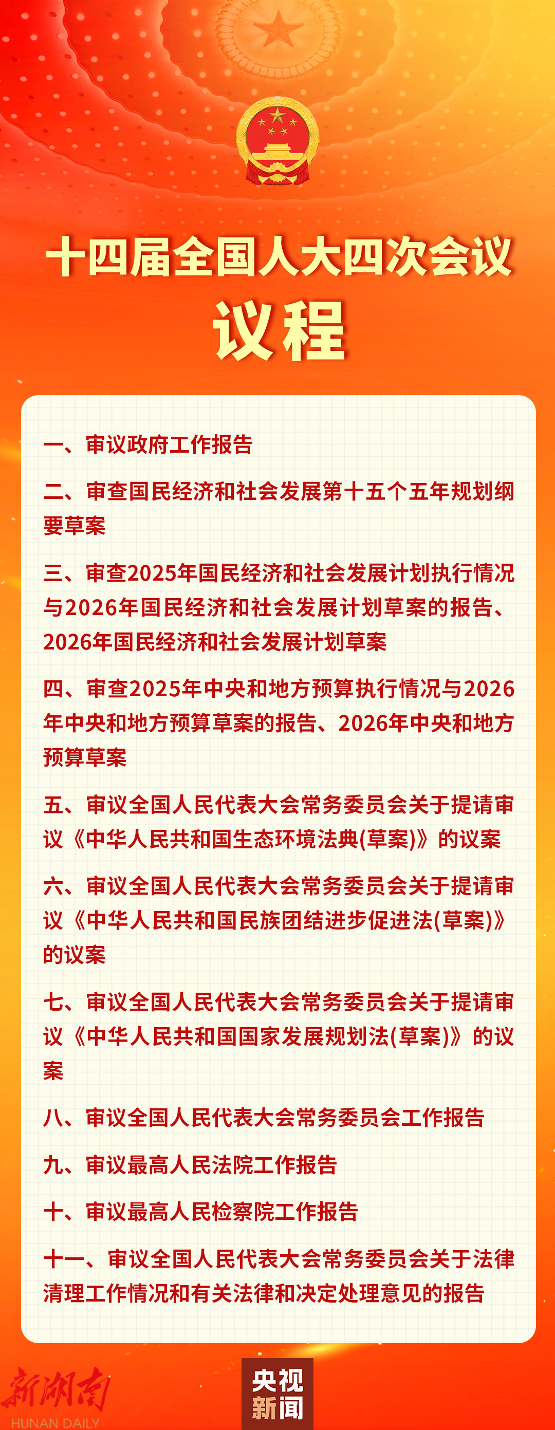 十四届全国人大四次会议3月5日上午开幕 会期8天