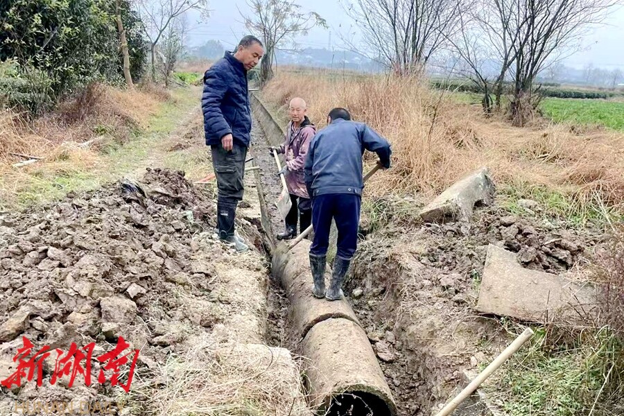 当地村民在田间沟渠开展清淤疏浚作业