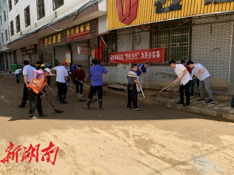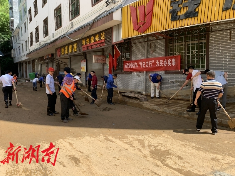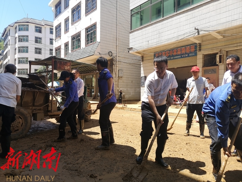 期间,县委书记伍志平,县级领导郭远飞、黄守为等到场指导,查看了迎宾路周边受灾情况,并拿起工具与广大干部群众一起投入到大清扫、大清洗、大消杀行动中。