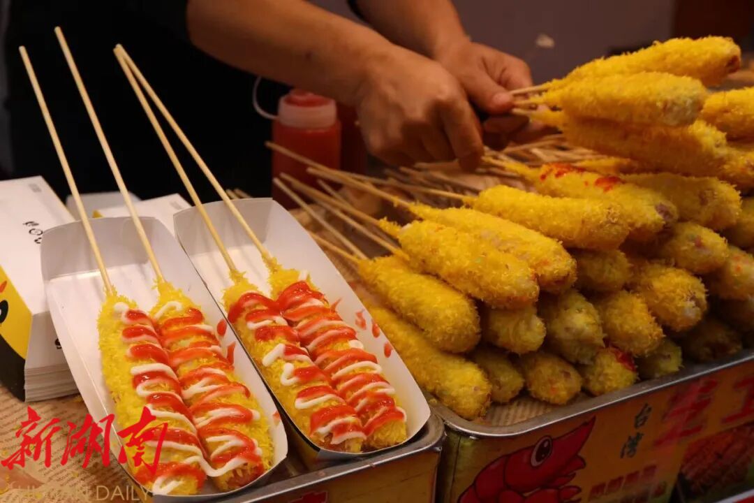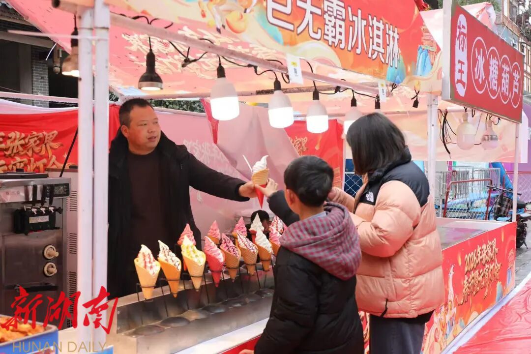 走进市集,香气扑鼻而来,热闹氛围瞬间拉满。蒙古大串、长沙臭豆腐、章鱼小丸子、重庆酸辣粉、老北京手工糖、冰糖烤雪梨等特色小吃一应俱全,满足市民游客的多样味蕾。摊位们各显身手、热情吆喝,前来购买的市民络绎不绝。 “这里既有我们张家界的老味道,又能吃到外地的特色美食,带着孩子来逛,特别有氛围。”正在品尝小吃的市民李女士笑着说。