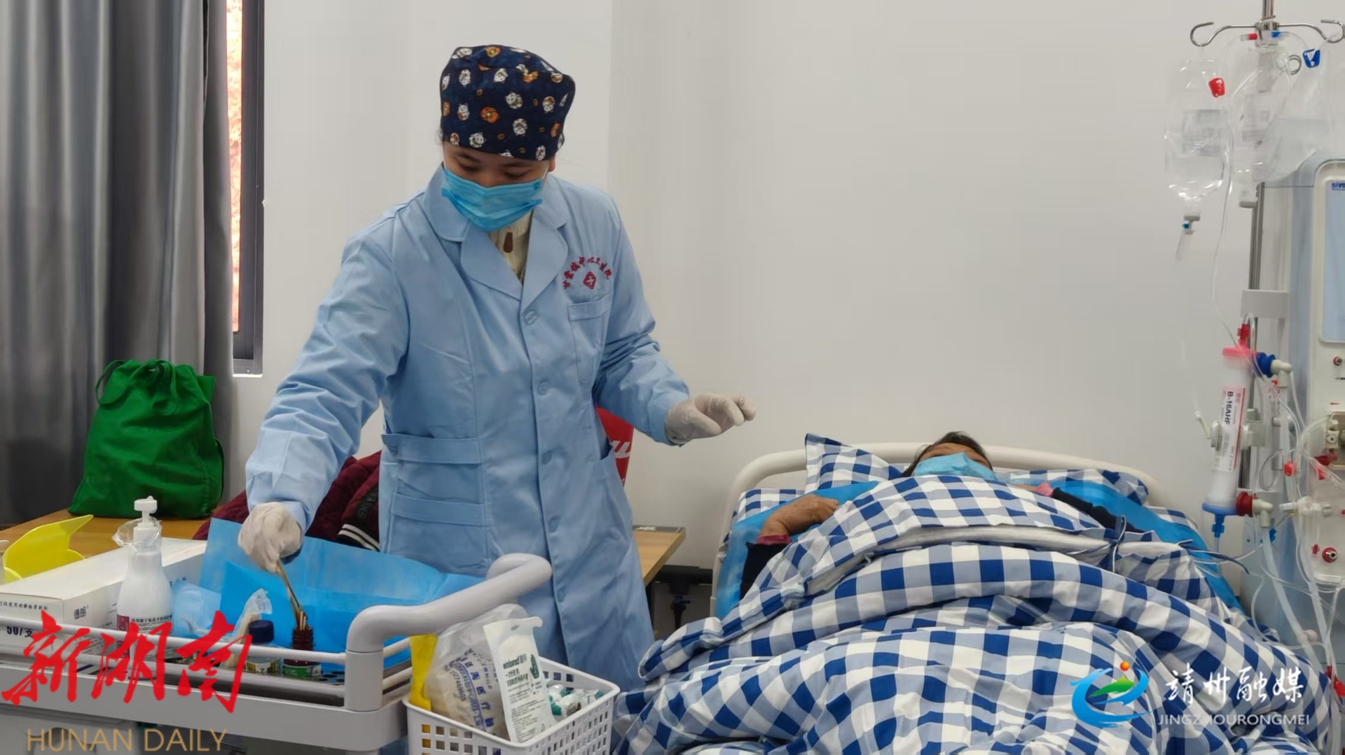血液康复中心护士正在为做血液透析的患者消毒(刘昊 摄)