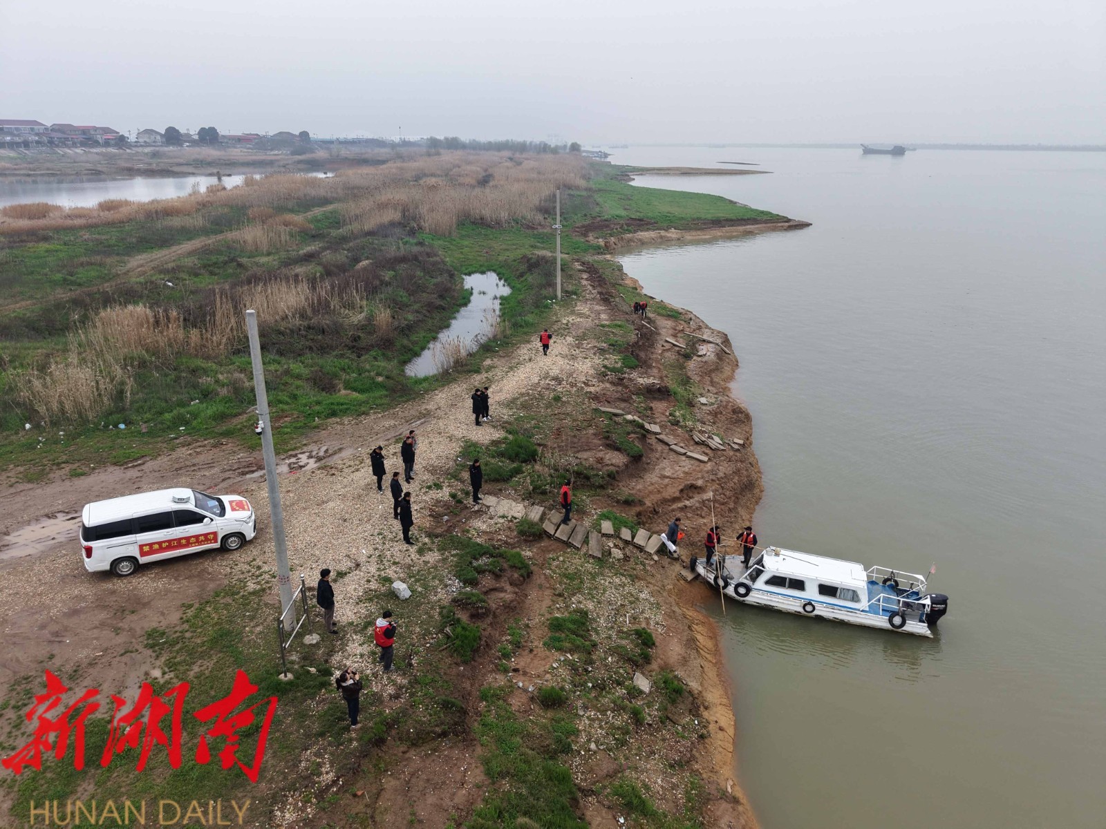 湘江作为长江重要支流,其生态地位不言而喻。三塘镇水域岸线长,是禁捕退捕的前沿阵地。行动现场,镇村两级除了出动执法船艇进行水上巡查、组织力量深入滩涂草丛进行“地毯式”搜索外,还启用了无人机对重点河汊进行空中巡查。“利用无人机视野广、机动性强的特点,我们能及时发现藏匿在死角、人力难以抵达区域的违规网具。”执法人员介绍,通过“天上拍、水上巡、岸上查”的联动模式,行动效率大幅提升。
