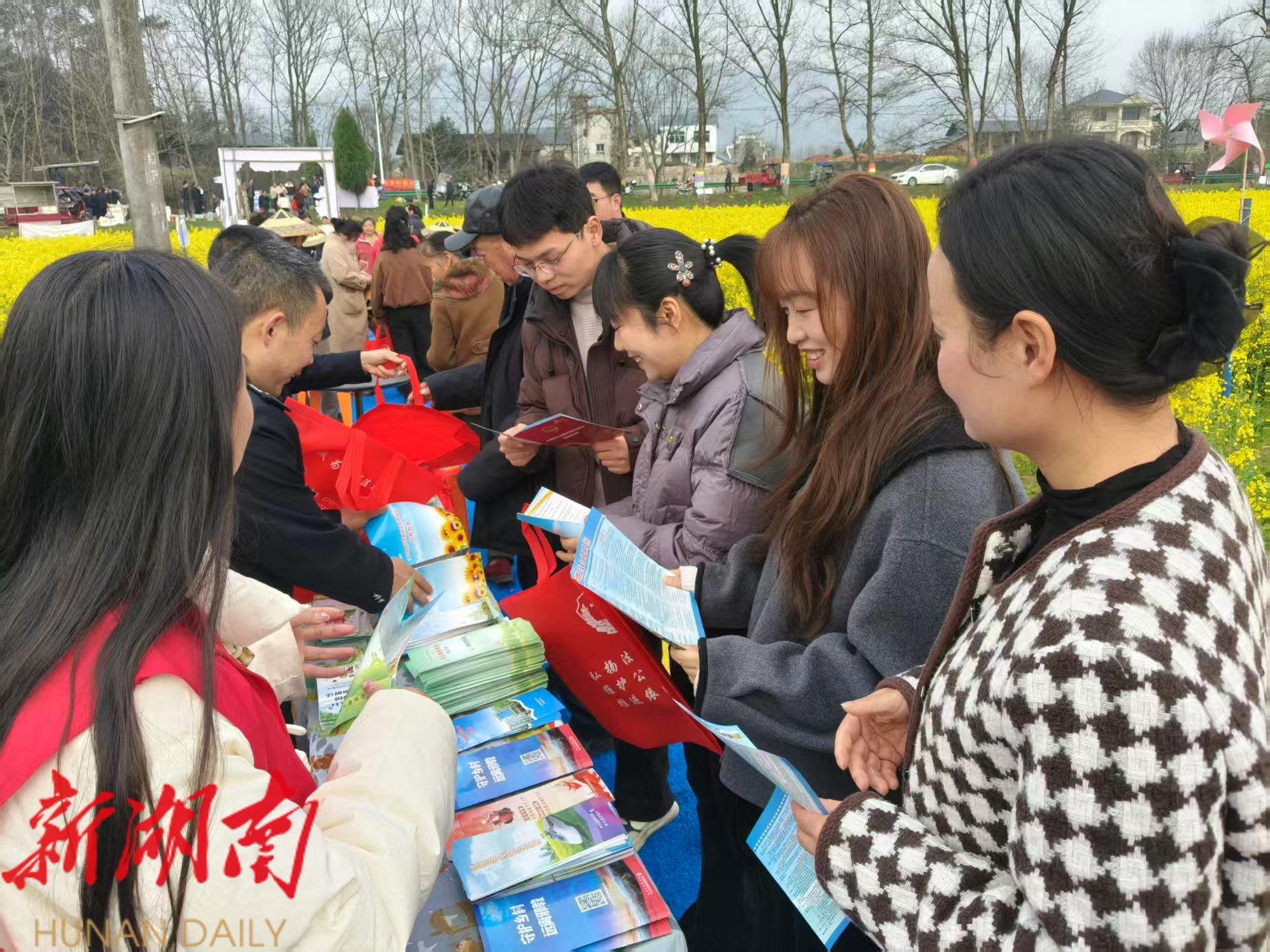 县摄影家协会精选多幅铜湾风光作品,在花海中举办“摄影展览·感受铜湾”主题展,从晨曦梯田到暮色炊烟,从春华秋实到风土人情,全方位呈现铜湾四季之美。活动现场创新设置“法在乡间”宣传摊位,结合“平安法治建设”工作重点,向游客普及安全知识、妇女权益保护等内容,让法治宣传融入田园诗意,实现“文旅+普法”的创新联动,为春日盛会增添一抹温暖的法治底色。