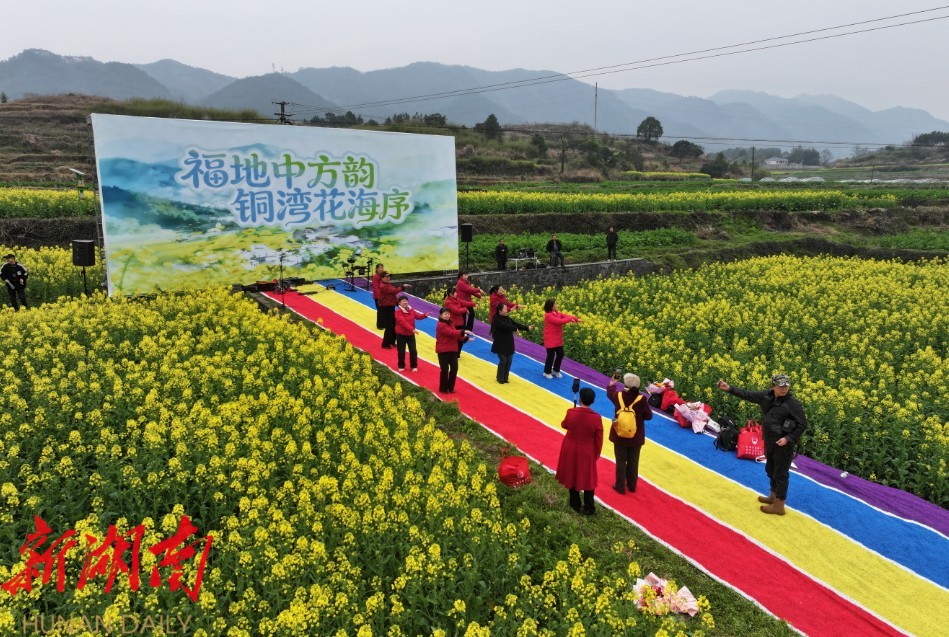 春风拂暖,花海鎏金。飞驰的高铁列车不时从花海边缘穿行而过,以时代“加速度”连接山水与远方。铜湾镇以花为媒、以乐会友,推动区域交通优势与生态文旅深度融合,借助互联网传播裂变,让“诗画中方,多彩铜湾,梦里水乡”的形象深入人心。在这片金色沃土上,乡村振兴的新画卷正随春风徐徐铺展。