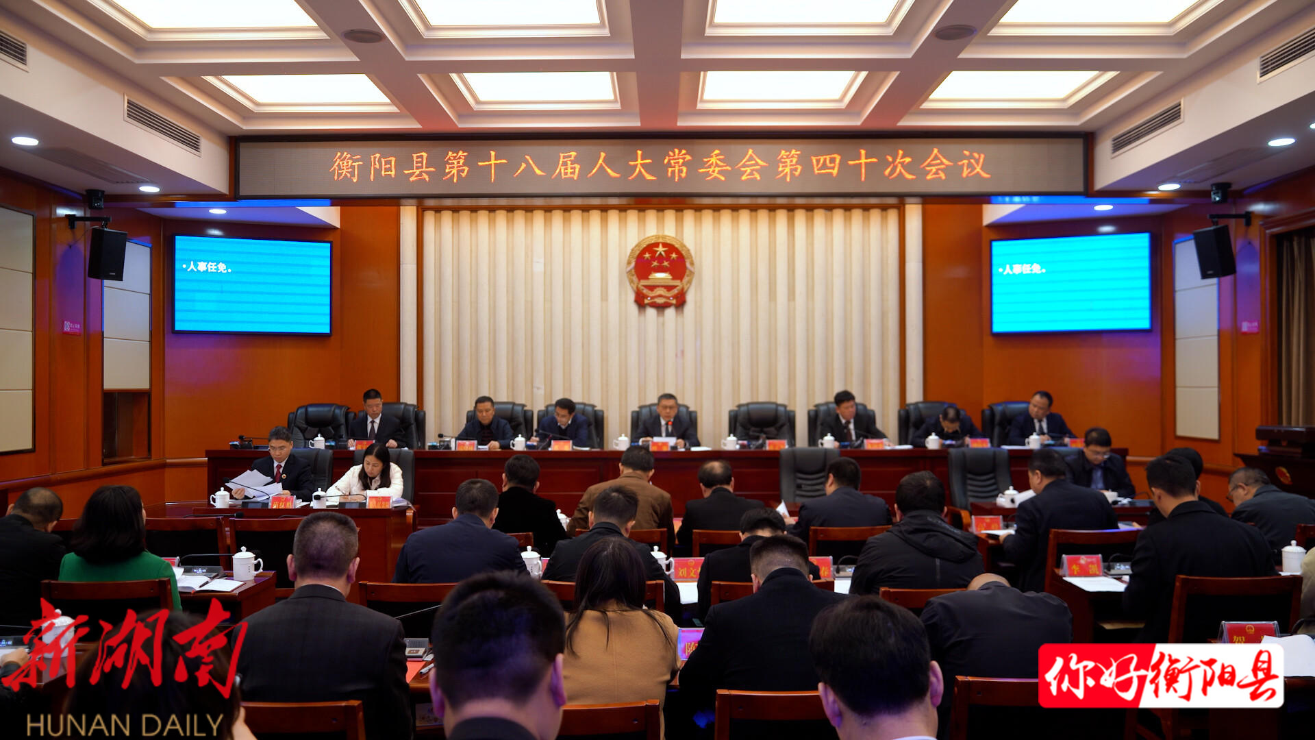 会议审议通过有关人事任命议案,任命茹红胜为衡阳县人民检察院副检察长,决定茹红胜副检察长为衡阳县人民检察院代理检察长。会议听取和审议了关于县十八届人大八次会议议程(草案)、日程(草案),衡阳县人大常委会工作报告(草案),县十八届人大八次会议主席团和秘书长等名单(草案),县十八届人大八次会议补选办法(草案)、民生实事项目票决办法(草案),衡阳县人民政府2026年度民生实事候选项目的形成过程和基本情况说明,决定提交衡阳县第十八届人民代表大会第八次会议表决。
