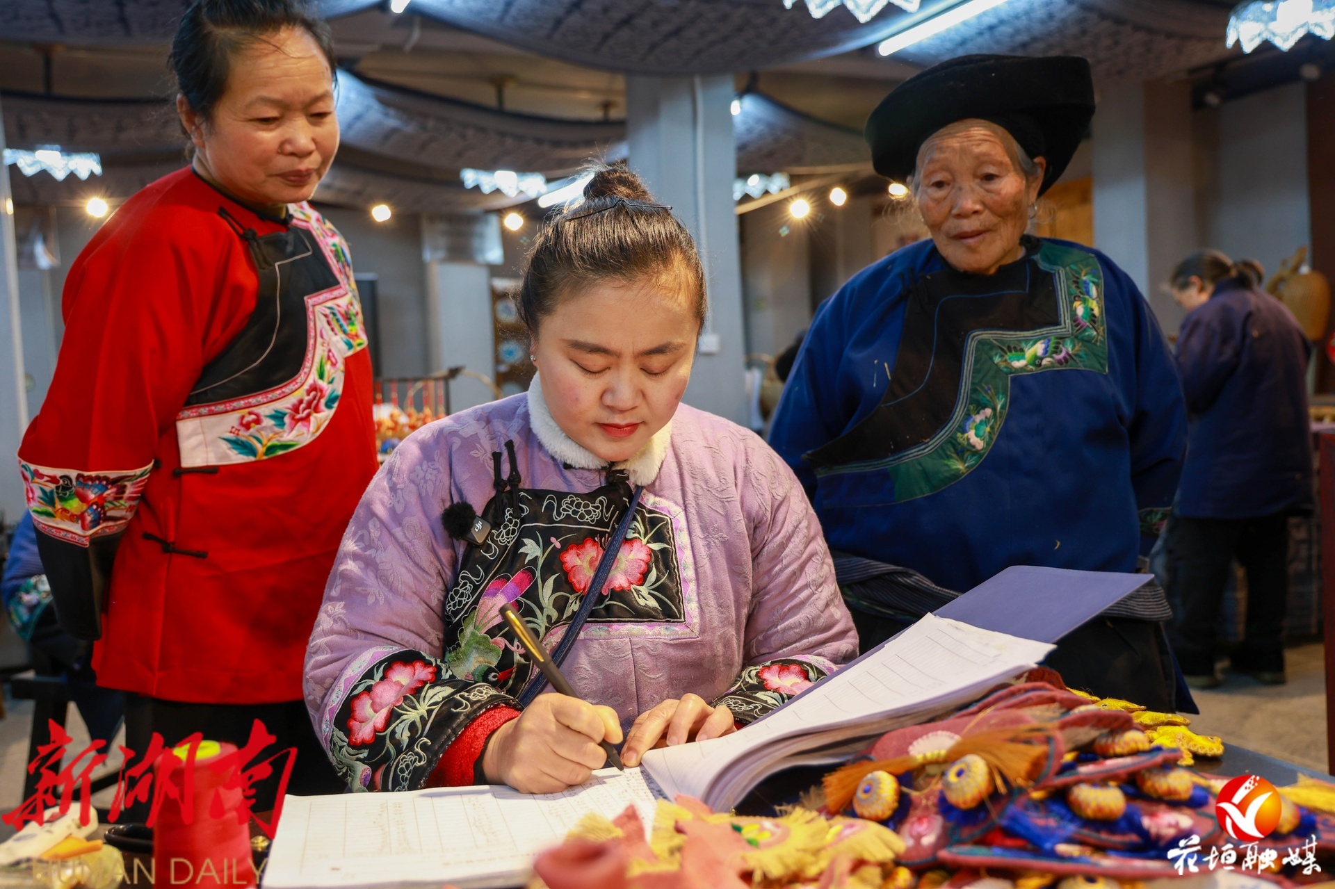 在工坊的日常交流中,吴满金也时常和绣娘们分享创新想法:“我们上次培训学到的,苗绣不仅能绣在衣服上面,还可以做成包包,这类产品需要大量手工制作,像图案里的胡子、眼睛、耳朵等,都要细细雕琢,这样一来,大家能做的手工活更多,赚到的钱也更多,你说是不是?”简单的话语,点燃了绣娘们增收致富的信心,也让老手艺的创新之路越走越宽。