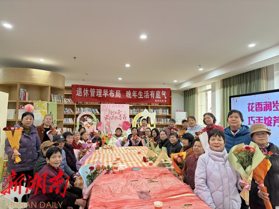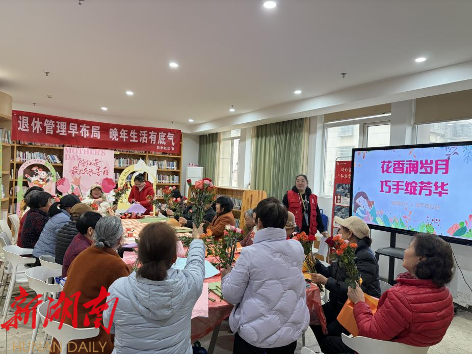 湖南日报·新湖南客户端3月9日讯(通讯员 曾庆园)为进一步丰富辖区退休女性的精神文化生活,提升其幸福感与获得感,3月8日上午,开福区四方坪街道胜利社区妇女联合会携手长沙市地平线认知症长者服务中心,在社区党群服务中心开展“花香润岁月 巧手绽芳华”主题活动,邀请辖区退休女性职工欢聚一堂,共度一个别样温馨的节日。