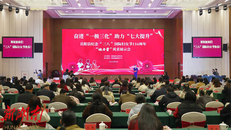 湖南日报·新湖南客户端3月9日讯(通讯员 罗爽 周昱君 李芳暄) 在第116个“三八”国际劳动妇女节来临之际,3月6日,岳阳县举办奋进“一极三化” 助力“七大提升”——纪念“三八”国际妇女节 116 周年暨“她力量”风采展示会,共同聆听巾帼奋斗故事,凝聚榜样前行力量。县委副书记、宣传部部长曹超出席并致辞,县领导彭碧芳、周年、张海燕、彭荣欣、敖珊出席。各乡镇(街道)、县直单位分管妇联工作负责人,全县副科级实职以上的女干部,妇委会主任、妇联主席及“三新领域”妇联、民营女企业家代表、优秀女党员代表等260余人参加活动。