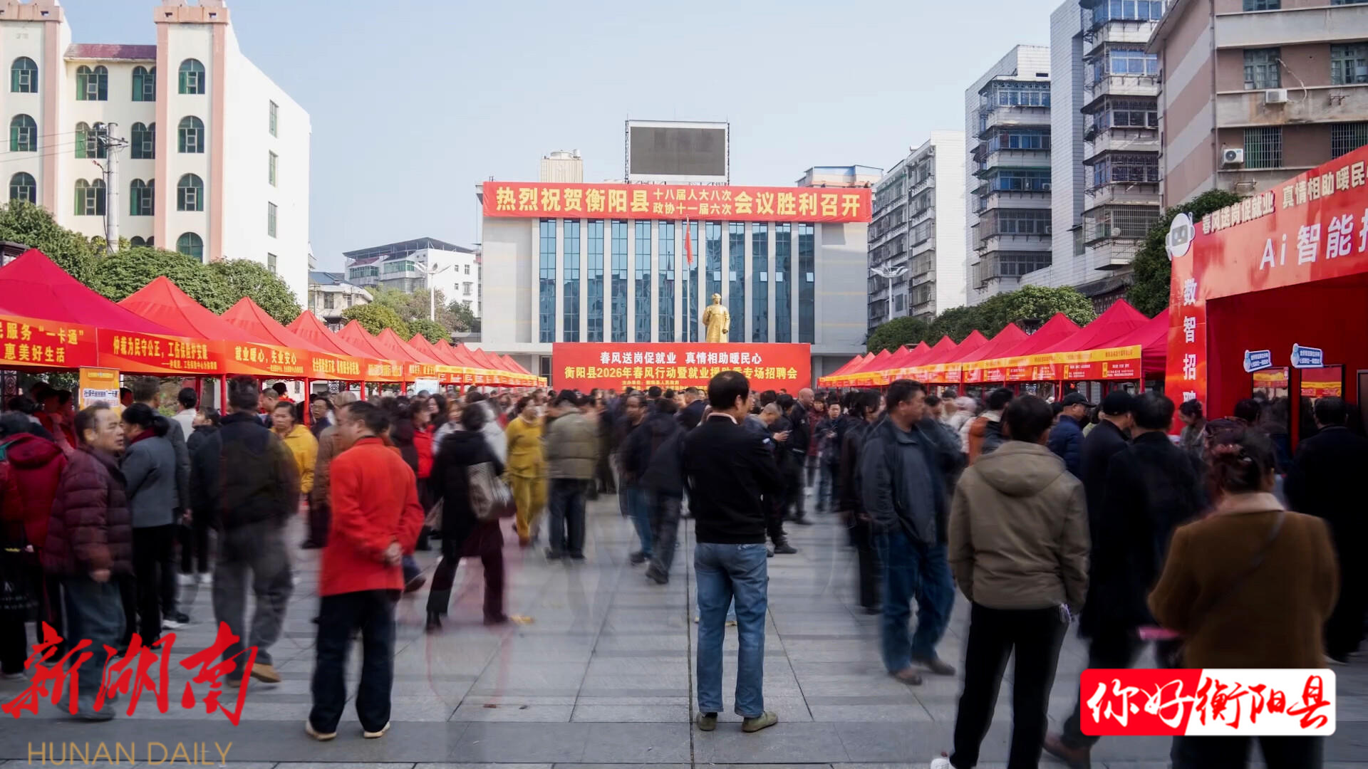 为帮助广大求职者就近找到好工作,助力企业高质量发展,3月6日上午,由衡阳县人民政府主办、衡阳县人力资源和社会保障局承办的2026年“春风行动”暨就业援助季专场招聘会在夏明翰广场火热举行。