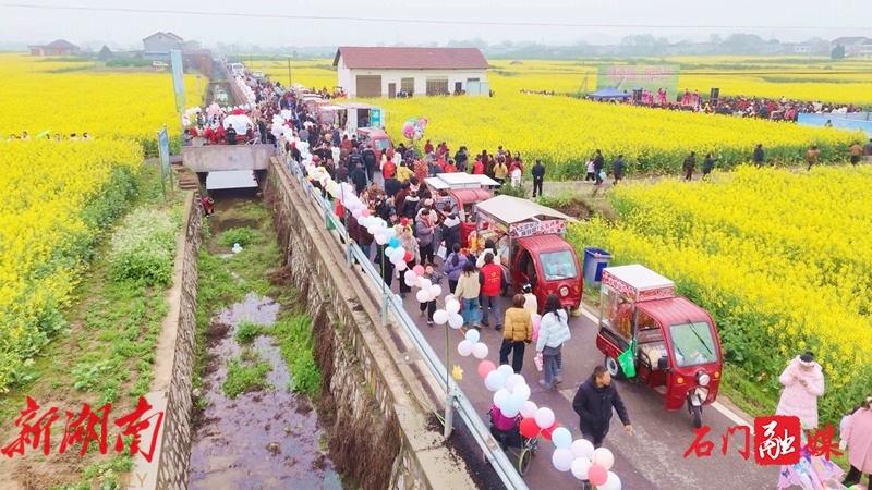 新石门客户端.3月9日讯(记者 杨帆 徐攀)3月8日,易家渡镇举办“田园易趣·相约易市”活动,邀请游客到叶家坪村连片油菜花田共赴一场春日的浪漫之约。