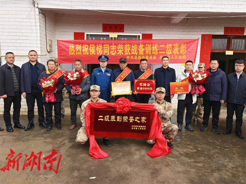 湖南日报·新湖南客户端3月9日讯(通讯员 龚若枫) 3月9日,岳阳县人武部联合岳阳县退役军人事务局组成慰问队伍前往新墙镇,为荣获“二级表彰”的现役军人侯悌送去立功喜报,让军属共享喜悦荣光,传递党和政府对军人及军属的关怀与敬意。