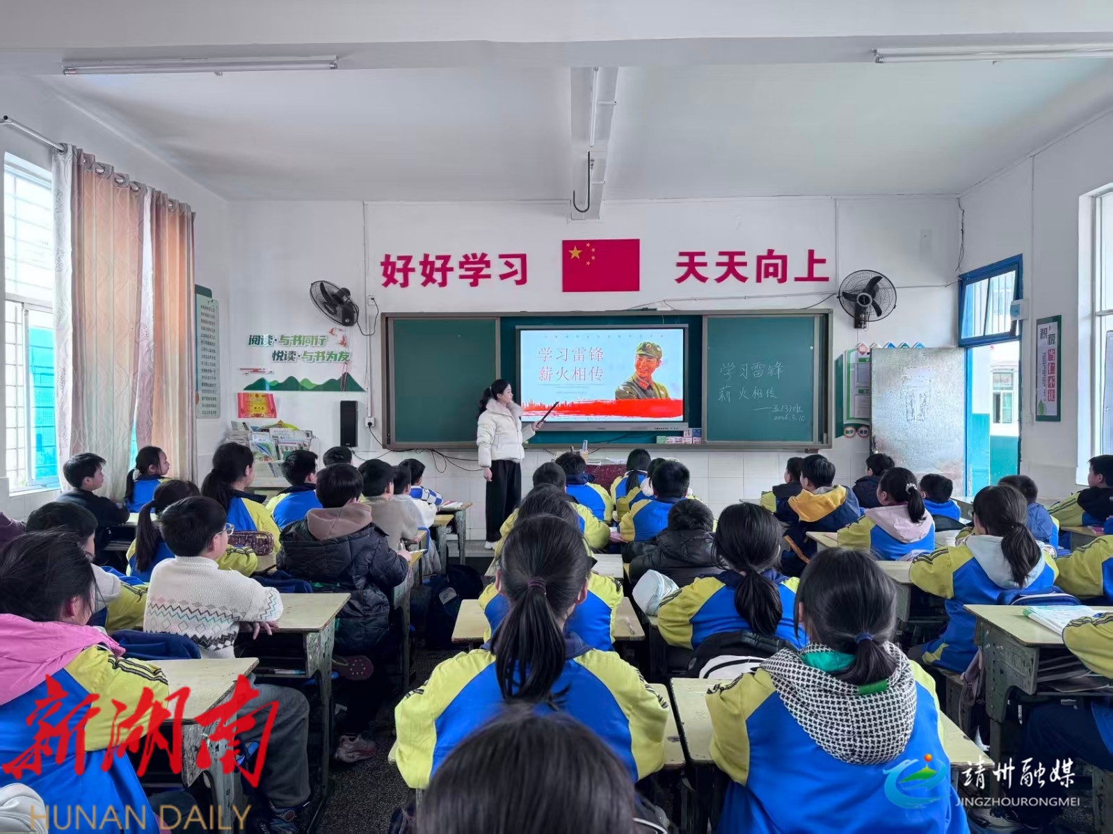 飞山小学以专题班会为载体,班主任通过故事分享、视频观看、小组讨论等形式,讲解雷锋事迹与时代内涵,学生结合生活分享“活雷锋”故事,立志以实际行动践行新时代青少年担当。