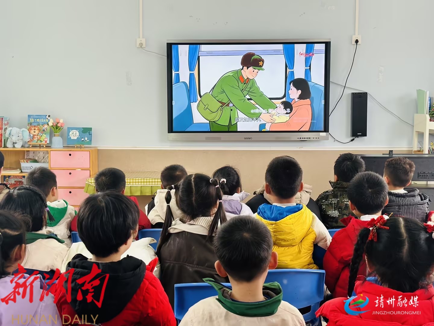 县二幼的幼儿正在观看雷锋主题动画电影(吴荣萍 摄)