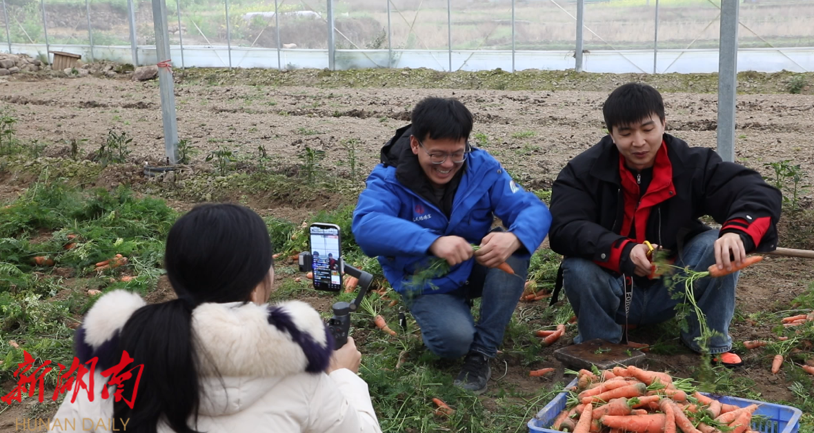 刘允浩 与村干部、农户一起采收、分拣、装袋,同步开启田间线上直播,向网友介绍岭头村胡萝卜的生长环境、口感优势与食用方法,号召消费者下单支持。与此同时,他还走进湖南省康德佳林业科技有限公司直播间,开展专场助农直播,借助企业成熟电商渠道与品牌影响力,进一步扩大销售覆盖面,线下联动商超、电商平台与社区团购,搭建从田间到车间再到餐桌的快捷通道。 “ 平时我们自己找销路,现在有这个助农大使来帮我们卖,我们今天一天可以卖完了,感谢助农大使来帮忙。”中和镇岭头村村民蒋满秀开心地说道。