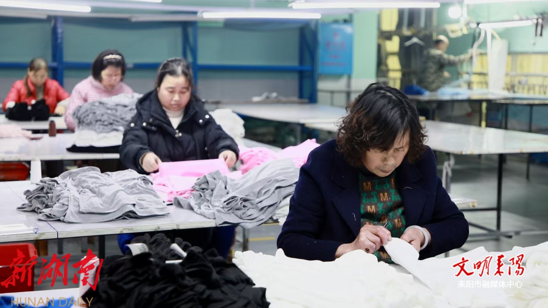 耒阳融媒3月10日讯(记者 梁梓坤) 近日,走进耒阳高新区湖南浚林服饰有限公司生产车间,只见缝纫机声此起彼伏,工人们正忙碌地赶制订单。一批批新衣物在裁剪、缝制、熨烫和检测等工序中快速流转,随后被打包装车,发往国内外市场,车间内一派热火朝天的生产景象。