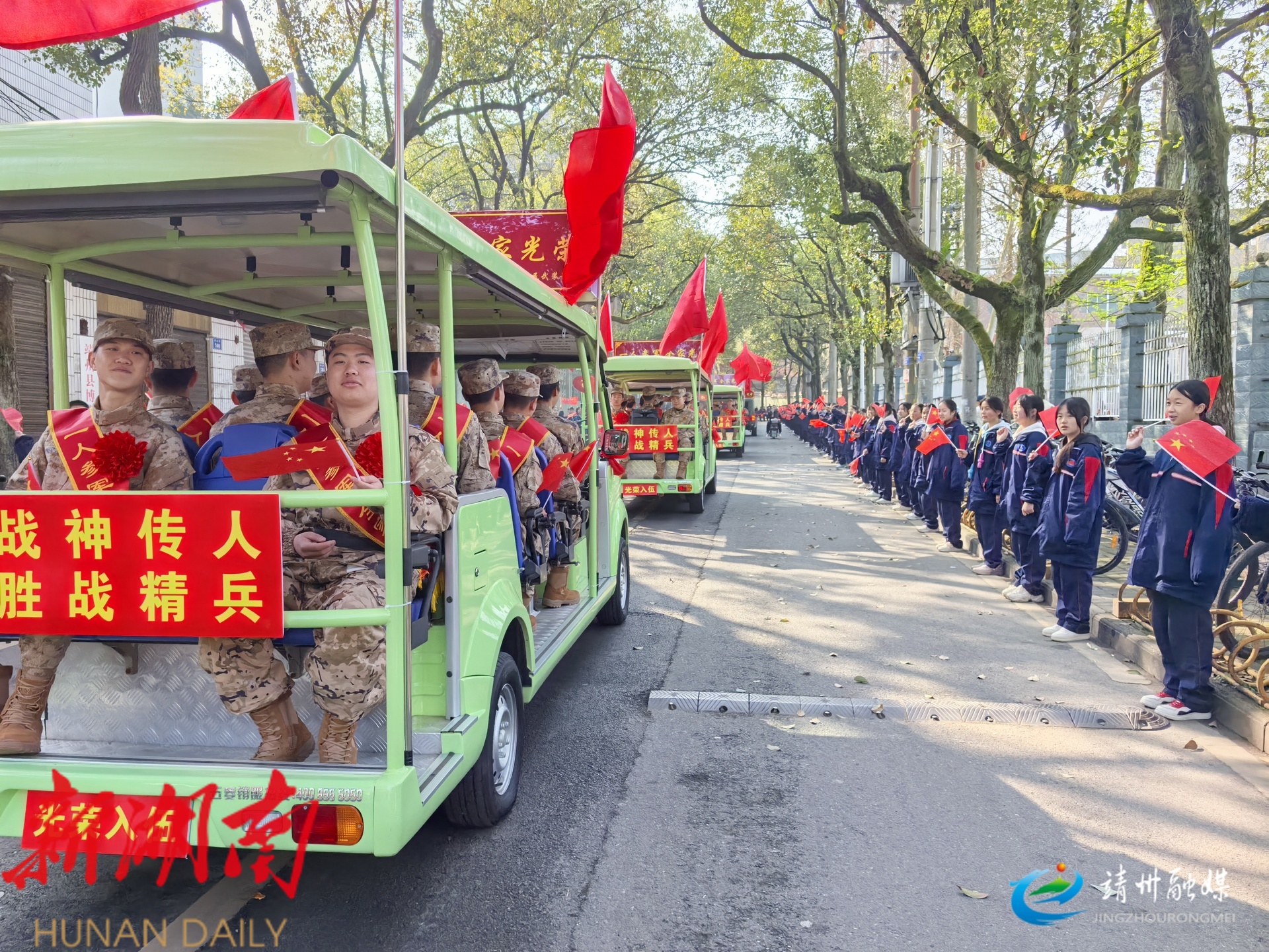 沿途市民驻足欢送、掌声不断,大家用手机记录下这一光荣时刻。“希望他们在部队好好干,守好我们的国家,家乡永远是他们的后盾。”市民杨世武激动地说。