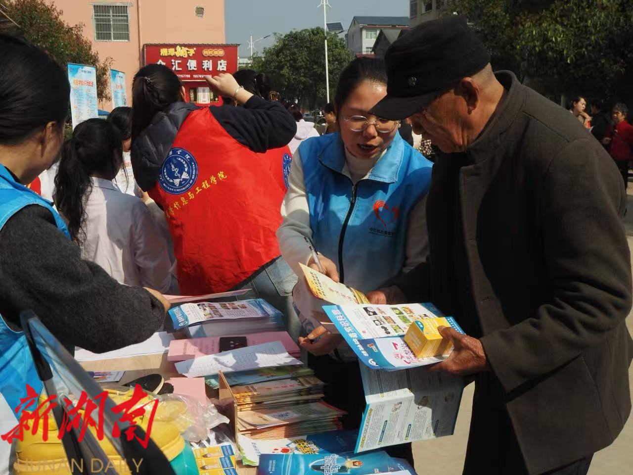 活动现场暖意融融,各个服务点位前人头攒动,志愿者们以饱满的热情为居民提供精准贴心的服务。健康义诊区,高校师生志愿者充分发挥医学专业优势,免费为居民测量血压、血糖,细致记录健康数据,针对高血压、糖尿病等常见慢性病给出个性化健康指导和饮食建议;现场演示心肺复苏、海姆立克急救法,手把手指导居民实操,同步科普医学影像检查相关知识,发放健康宣传手册,引导居民树立科学的健康理念。