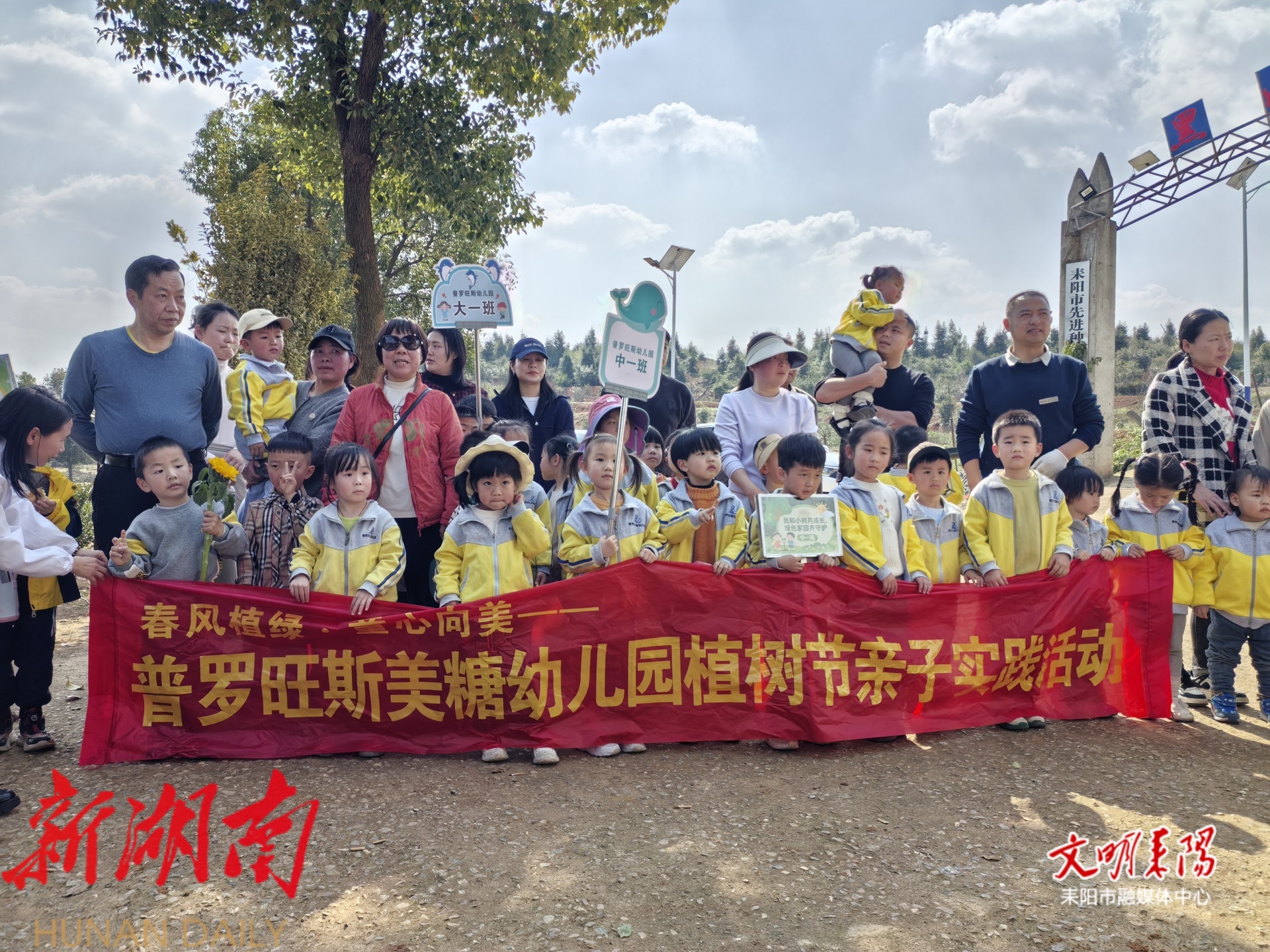 3月12日,耒阳市普罗旺斯美糖幼儿园在哲桥镇开展“春风植绿·童心向美”亲子植树活动。