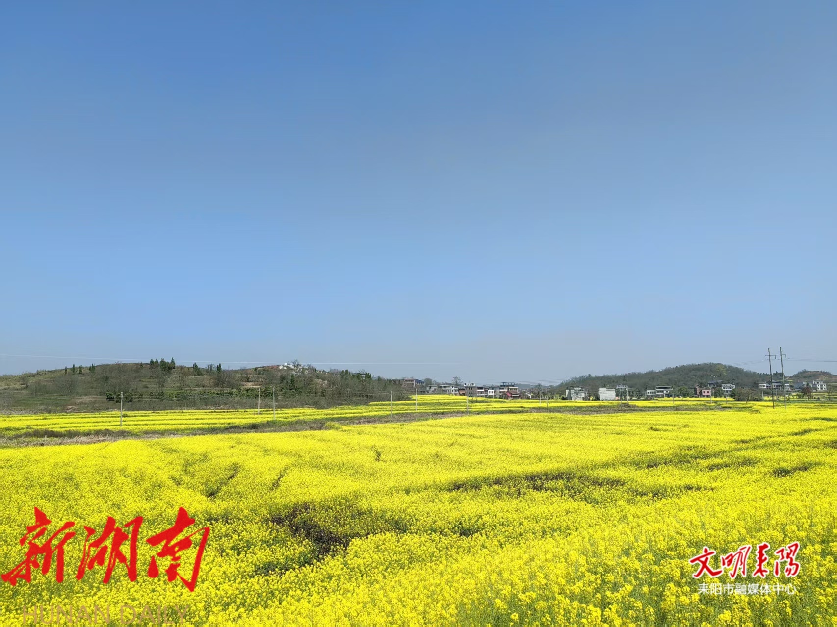 耒阳融媒3月12日讯(记者 钟菲 刘晗) 连日来,气温持续回暖,淝田镇十里观光长廊沿线千亩油菜花迎来盛花期。金浪翻涌的花海与青山叠翠、错落民居、整洁村道交相辉映,周边红色景点、古村落、水库景致相映成趣,勾勒出一幅生机盎然的春日画卷。