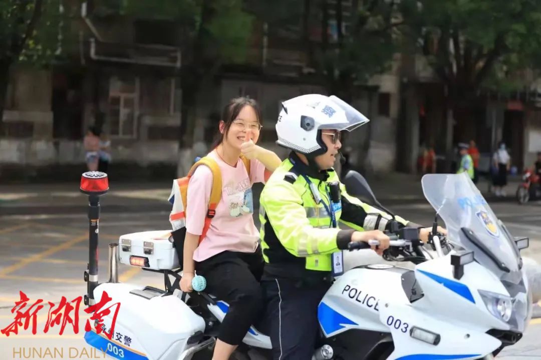 交警叔叔送考获考生点赞(摄影 郭家良)
