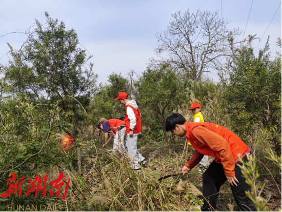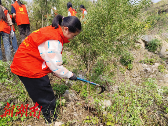活动现场,大家精神饱满、干劲十足,手持镰刀、锄头、剪刀等工具,认真清理缠绕树木的枯藤、拔除杂草、修剪枯枝,红色马甲成为春日林间最亮眼的风景。