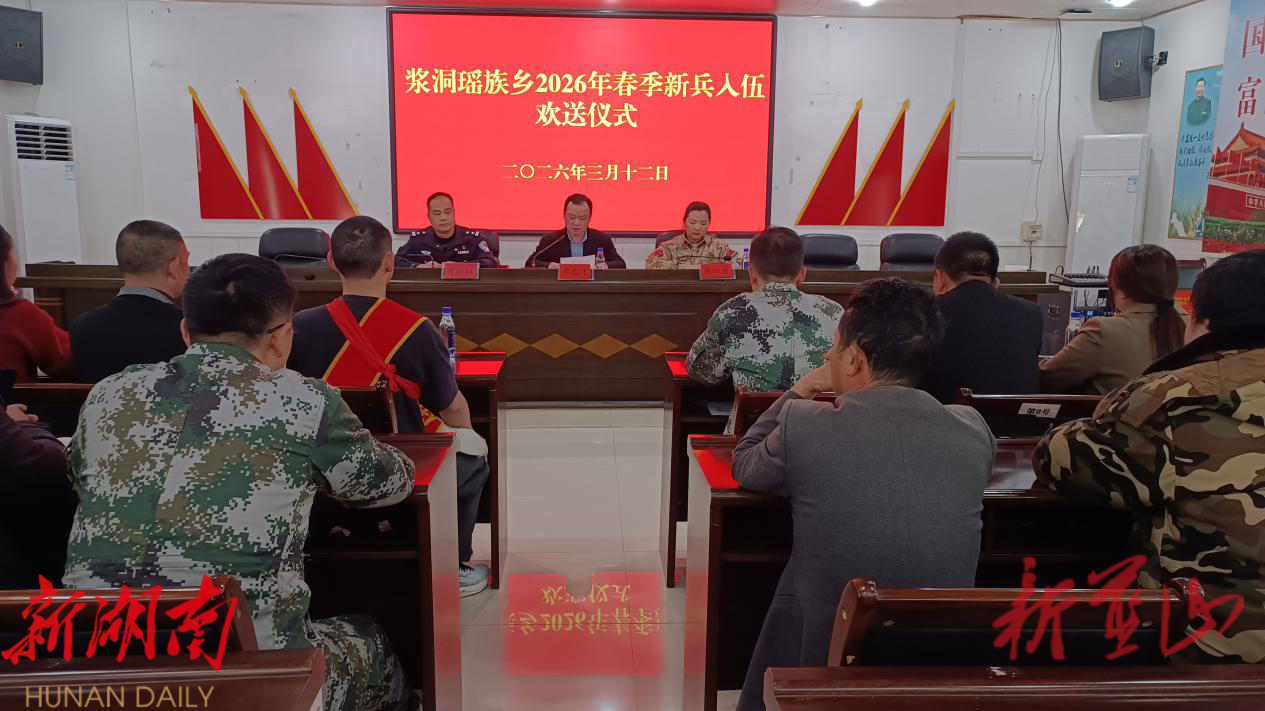 新蓝山客户端 3月16日讯 (通讯员 唐智立) 一身戎装,一生荣光!3月12日,浆洞瑶族乡为即将踏上军旅征程的新兵们,举行了一场温暖又庄重的欢送仪式。