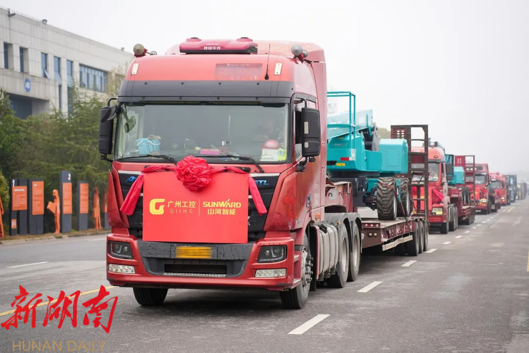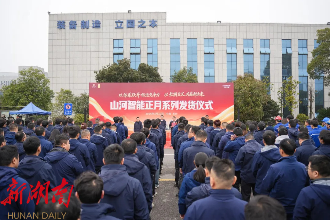 湖南日报·新湖南客户端3月11日讯(长沙经开区工作站记者 欧亚琦)3月10日,山河工业城内一派繁忙景象,一场规模盛大的正月系列发货仪式在此隆重举行。随着山河智能党委书记、董事长付向东一声“发车”令下,满载着近60台套高端装备的货车长龙缓缓驶出园区。这批总金额过亿元的设备将发往华东、西南、华中、华北、西北等国内重点区域,以及欧洲、美洲、东南亚等海外高端市场,标志着山河智能在2026年以“开局即决战、起步即冲刺”的奋进姿态,全面吹响了新一年加速拓展国内外市场的冲锋号角。