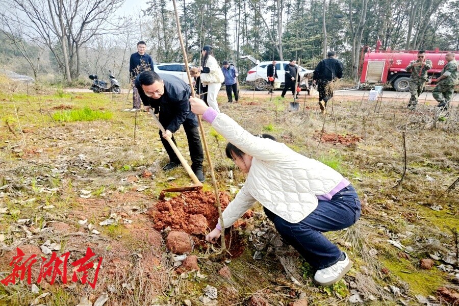 视外桃源客户端3月12日讯(通讯员:李佳)阳春三月,草长莺飞,正是植树造林的好时节。为践行“绿水青山就是金山银山”理念,推动绿色发展,理公港镇人民政府组织全体干部职工于3月12日在杨公桥村开展“履行植树义务,共建美丽湖南”义务植树活动,镇团委、妇联、退役军人及志愿者积极参与,以实际行动为家乡大地增添一抹新绿,助力“秀美桃源”。
