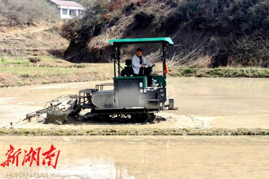 春耕生产,农机先行。沉寂一冬的田野,被轰鸣的农机声唤醒。在凤鸣村,种粮大户黄顶强承包的600亩农田里,旋耕机在田块中来回穿梭,翻耕后的泥土松软平整,清新的泥土气息扑面而来。“有了旋耕机帮忙,以前要半个月的活,现在几天就能完成,还省了不少人力。”黄顶强介绍,在农技人员指导下,他借助有利墒情高效推进翻耕作业,为后续育秧做好准备。