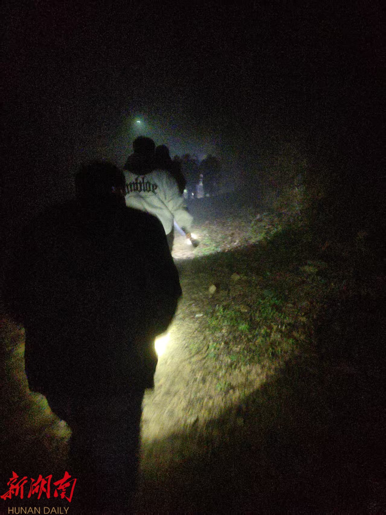 深知深山夜寒、失联村民随时可能面临失温风险,蒲声龙第一时间将情况上报乡党委。乡党委书记杨韬迅速部署,联系卫生院随时待命、做好急救准备,同时亲自带队组织全乡干部紧急驰援,与村搜救队汇合后,重新整合力量,编排成2组大型搜救队,邀请熟悉山情的村民担任向导,明确搜救方向——一组往北,向溆浦县溪里湾村方向搜寻;二组往南,朝溆浦县三岔溪村搜寻,采用“分片排查、重点搜寻”方式开展地毯式搜救。雨越下越大,气温越来越低,搜救队员们冻得瑟瑟发抖,却始终保持着高度的警惕,不放过任何一个蛛丝马迹。有的队员体力不支,就靠在树干上稍作休息,喝一口热水便再次投入搜救;有的队员虽已疲惫不堪,却仍主动为身边队友加油打气;有的队员哪怕浑身湿透、手脚酸痛,也始终咬牙坚持。整整一夜,搜救队伍冒着寒冷、顶着风雨,在深山之中持续搜寻,灯光划破夜空,温情驱散严寒,用坚守与执着,为失联村民筑起一道生命防线。