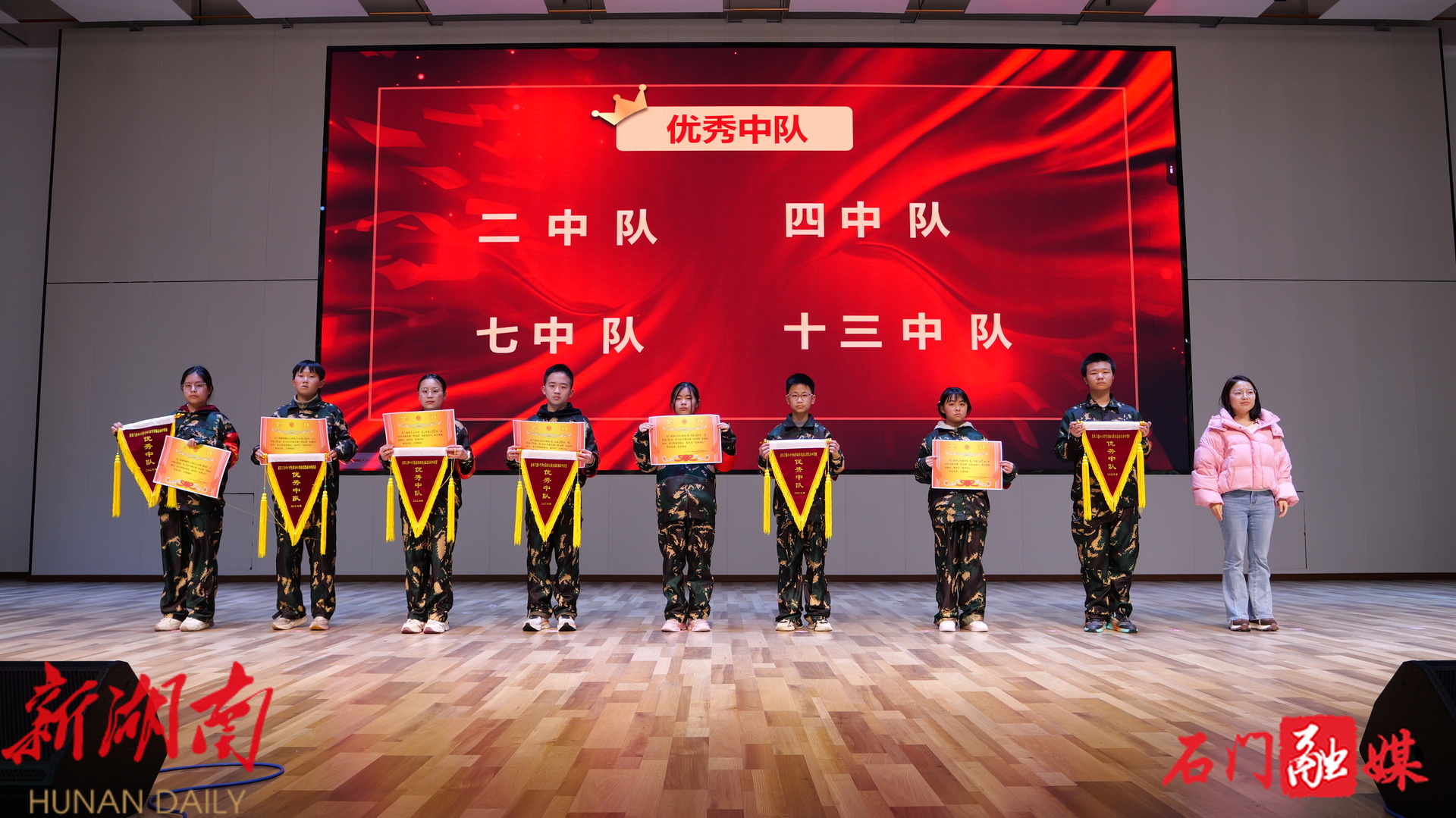 “现在,我很荣幸地宣布,获得本次‘风采展示优胜中队’荣誉称号的是一、五、八、十三中队,”主持人稍作停顿,全场屏息。名单揭晓,中队长和指导员昂首走上舞台,接过锦旗。台下掌声雷动。