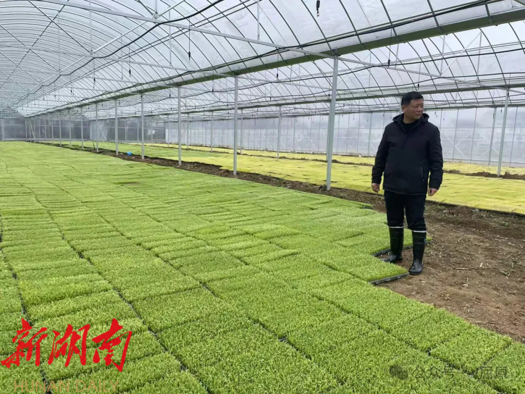 在河夹塘社区兴泰农业农机专业合作社的育秧大棚里,农技员靠近苗床,仔细查看秧苗长势。“徐老板,最近一直下雨,大棚里湿度大、光照少,您得注意及时排湿增温,别让秧苗受冻,也要防病害。”针对低温阴雨天气,农技员现场给徐老板支招。